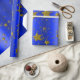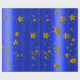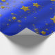 Um papel de embrulho de férias com uma dispersão de estrelas ouros sobre um fundo azul metálico para dar mais alegria às suas comemorações de Natal deste ano.