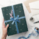 Este elegante papel de embrulho apresenta um fundo verde profundo e rico que evoca um senso de tranquilidade e sofisticação. O fundo é enfeitado com um delicado padrão de estrelas de ouro espalhadas pela superfície, criando uma atmosfera celeste e festiva. As estrelas são variadas em tamanho e orientação, somando-se ao charme geral e ao interesse visual do design.