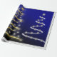 Estas árvores são brancas e douradas com estrelas brancas e douradas brilhantes. Isto é feito num fundo azul, com uma borda prateada. Disponível em vários estilos diferentes. Este papel de embalagem está disponível em vários tamanhos. Personalize de acordo com o seu gosto.