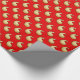Paisley em um gradiente sombreado de dourados-luz, esboçado em preto, sobre um fundo vermelho chinês profundo