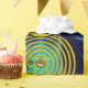 PAPEL DE PRESENTE DOURADO HÍPER LABYRINTH, ONDAS DE LUZ AZUIS TEAIS