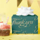 Imagem de uma elegante brilha de diamante falso e obrigado dourado, seu padrão de design de texto sobre um fundo de turquesa personalizado.