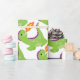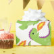 Um dragão verde pequeno bonito com corações em sua parte traseira está disparando em chamas fora de sua boca.