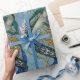 Um dragão chinês em verde e no azul com design decorativo em seu para trás, em um fundo azul da máscara mais clara decorado com os ornamento de Nouveau da arte do metal do ouro. Um design original para dragonlovers e amantes da arte da fantasia!