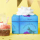 Dragão bonito e colorido em um papel de embrulho de Aniversário personalizado com flor rosa brilhante de zinnia. Você pode alterar ou adicionar qualquer texto que desejar para um toque mais personalizado. Visite o tesouro dos olhos sorrindo para ver mais itens de flores e natureza.