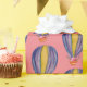 Balão de ar quente com flores, cor de fundo personalizada, papel de embrulho de presente em ocasiões especiais.