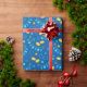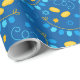 Este papel de embrulho moderno e moderno é fabuloso! Tem sonhos, gelt, Stars of David tudo em ouro e azul. Pegue o suficiente para enrolar todos os presentes.
