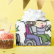 Uma garota de Brunette dirigindo um carrinho de golfe em um dia ensolarado.