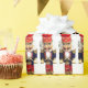 Este papel colorido de embrulho apresenta um baterista tradicional de madeira em um fundo branco, perfeito para embrulhar todos os presentes de Natal.