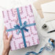 Patos cor-de-rosa doces em um fundo branco das bolinhas. Para fazer este papel de embrulho original adicionar uma imagem.