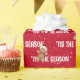 Branco 'TIS O texto da SEASON com gengibre e flocos de neve em fundo vermelho. O texto pode ser editado. A cor de fundo pode ser alterada.
