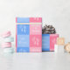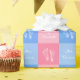 Um belo, rosa e azul, anúncio de parto gêmeo e chá de fraldas com dois conjuntos de pegadas de recém-nascidos. Personalize adicionando os nomes da menina e dos gêmeos preciosos à área de texto personalizada.