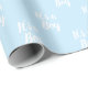 É um papel de enrolar de presente de chá de fraldas branco claro e azul