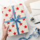Um papel de embrulho festivo para a época de Natal com estrelas vermelhas brilhantes sobre fundo cremoso. Esta cor de fundo pode ser alterada para qualquer cor da sua escolha. Vá para o Painel de Design e, no lado direito, selecione "Fundo" e selecione. sua cor.