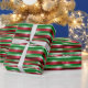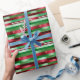 Este papel de embrulho de Natal apresenta uma design festiva com listras horizontais em cores tradicionais de Natal, verde, vermelho e branco, melhoradas por um efeito cercado metálico que adiciona um brilho elegante. O design inclui texto personalizável, permitindo que você adicione mensagens pessoais como "Feliz Natal para [Nome] de [Remetente(s)]", que se repete ao longo das faixas para uma aparência coesa. O efeito shimmering pega a luz lindamente, criando uma apresentação luxuosa e atraente para seus presentes. Este papel de embrulho é perfeito para adicionar um toque personalizado e deslumbrante aos seus presentes de Natal.