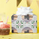 O papel de embrulho de Natal do Castelo Eilean Donan, clássico, apresenta um olhar de estanho com folhas e frutos sagrados. O Castelo de Eilean Donan, lar histórico dos clãs escoceses MacKenzie e MacRae, é apresentado em papel de embrulho de Natal em uma moldura de aparência de vintage que apresenta um olhar pintado de estanho com folhas e bagas ocas nos cantos. Dentro, o quadro brilha no castelo de Eilean Donan no pôr do sol.