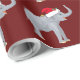 Papel de embrulho de Natal de elefante bonito, com um belo elefante de cinza vestindo um chapéu vermelho de santa em fundo de burlagem para o Natal. Eu adoro animais de férias engraçados.