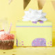 Um design bonitinho com elefantes roxos com corações. Listras de cor suave sobre fundo amarelo.
