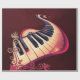 Elegance in motion, the curved piano. The keyboard curves and winds elegantly, creating an abstract and vibrant composition. The keys feature a soft gradient, ranging from light peach on the upper edge to pure white on the lower edge. Between the light keys are classic black keys, enhancing the contrast and emphasizing the musical theme. The interplay of the warm colors, the curved shape, and the ornate decorations creates a harmonious, artistic overall appearance that is both musically inspired and visually appealing.
