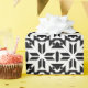 A sophisticated black arabesque geometric pattern featuring symmetrical ornamental details.