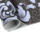 Elegant Damask wrapping paper roll. Blue and black colours.