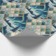 An abstract diamond pattern featuring a blue, green, and gold frozen winter landscape.