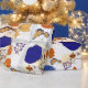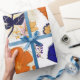 Make every gift unforgettable with this elegant botanical wrapping paper featuring bold modern florals in rich blue and vibrant orange tones over a luxurious gold textured background.