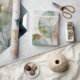 A graceful wrapping paper design featuring translucent watercolor leaves in soft blush, cream, teal, and sage tones. Delicate gold veining and splashes add a luxurious, artistic touch—perfect for sophisticated gifts, stationery, or craft projects.