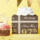 Este simples e elegante design de papel de embrulho apresenta uma mensagem personalizada como "Name-Here's 97th Birthday" (com o "97º" a ter um visual falsa/imitado de cor dourada) dentro de uma área quadrada de cor castanha com um contorno de fronteira simples. O nome está em um texto elegante, de cor branca, semelhante a script, e pode ser personalizado. Um papel de embrulho como este poderia talvez ser usado ao embrulhar presentes de aniversário para alguém que comemora seu 90° aniversário. [~Z0000223]