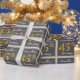 Este simples e elegante design de papel de embrulho apresenta uma mensagem personalizada como "NameHere's 45th Birthday" (com o "45º" a ter um aspecto de cor dourada falsa/imitação) dentro de uma área quadrada colorida de cinza com um contorno simples de fronteira. O nome está em um texto elegante, de cor branca, semelhante a script, e pode ser personalizado. Um papel de embrulho como este poderia talvez ser usado ao embrulhar presentes de aniversário para alguém que comemora seus quarenta e cinco anos. [~Z0000222]