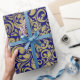 Papel De Presente Elegante Dourado Brilhante Real Azul Damasco