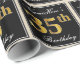 Este simples e elegante design de papel de embrulho apresenta uma mensagem personalizada como "NameHere's 35th Birthday" (com o "35º" a ter um visual falsa/imitado de cor dourada) dentro de uma área quadrada de cor preta com um contorno de fronteira simples. O nome está em um texto elegante, de cor branca, semelhante a script, e pode ser personalizado. Um papel de embrulho como este poderia talvez ser usado ao embrulhar presentes de aniversário para alguém que comemora seus trinta e cinco anos. [~Z0000217]
