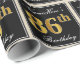 Este simples e elegante design de papel de embrulho apresenta uma mensagem personalizada como "NameHere's 86th Birthday" (com o "86º" a ter um aspecto de cor dourada falsa/imitação) dentro de uma área quadrada de cor preta com um contorno de fronteira simples. O nome está em um texto elegante, de cor branca, parecido com script, e pode ser personalizado. Um papel de embrulho como este poderia talvez ser usado ao embrulhar presentes de aniversário para alguém que comemora seu oitenta aniversário. [~Z0000217]