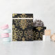 Papel de embrulho deslumbrante com damasco dourado em fundo preto. Pura elegância! Ótimo para aniversário, casamento, aniversário de casamento, chá de noiva.