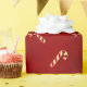 Design é vermelho e canas doces douradas em fundo vermelho.