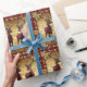 Papel De Presente Elegante Red Deer Moose Dourada Feliz Padrão Xmas