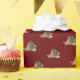O Elegante Rosa da Córsega apresenta a imagem de uma fenda de rosa de cor sépia em um padrão contra fundo burgundy. Concebido para coordenar com os convites para casamento Elegante Rosa Córsega e caixas de favores.