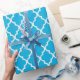 Elegante, tenda, clássico padrão decorativo de quatrefoil azul aqua. Para feriado, Natal, aniversário, ocasiões, embrulho de presente de celebração.