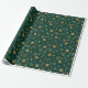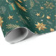Papel de embrulho de Natal elegante, verde e dourado, com estrelas, flocos de neve e padrão de presentes. Perfeito para embrulho de presente de Natal, adicionando um toque luxuoso e festivo aos seus presentes de Natal.