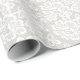 Esta delicada design é feminina e romântica. Um lindo lugar branco com uma cinza de fundo macio. Elegante White Lace Wrapping Paper.
