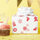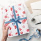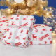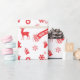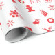 Uma repetição contínua vermelha de elementos de Natal - meias, gingerbreadman, flocos de neve, renas, Enfeites de natal, velas, árvore de Natal e as palavras "Feliz Natal" - em ilustração.