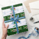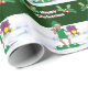 Série de Natal Diversão Papel de embrulho de Natal com um dos auxiliares dos Papais noeis - um elfo confuso, vestido de verde e segurando um ursinho de pelúcia com duas cabeças. Bobo velho elfo! Com folhas sagradas e bagas vermelhas amontoadas com neve como decoração, um fundo de abetos e secas de neve completa a cena. Perfeito para embrulhar esses presentes de Natal para alguém muito especial!