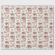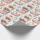 O papel colorido de embrulho de Natal apresenta ilustrações encantadoras de estoques confortáveis, enfeitados com verde festivo e fitas alegres. Ao redor das meias estão presentes estilizados, doces, e símbolos da temporada de festas, criando um design alegre e vibrante para comemorações de festas.