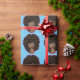 Esta design apresenta uma beleza afro-americana com "rainha, fenomenal, bela, inteligente, mágica, chefe, carinhosa, sexy, independente, engraçada, criativa e forte" aninhada em seu colar preto afro, em camadas douradas sobre um fundo azul com estrelas brancas. Papel de embrulho divertido para essa pessoa especial/presente ou só porque... por que não!