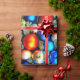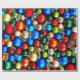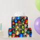 Ornamentos de férias muito bonito em repouso azul, vermelho, verde, prata e ouro entre ramos de Pine Tree.