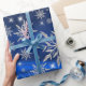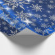 O papel de embrulho para celebração de Natal ao desenhar com os Enfeites de natal com folhas de decoração de neve em impressões retrorados com uma apresentação de cor azul.