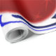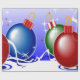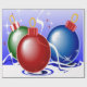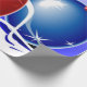 Esta imagem retrata bolas de Natal em vermelho, azul e verde. As fitas e as estrelas são vistas em branco, azul e vermelho. Foi adicionado um plano de fundo azul. Este papel de embalagem de Natal está disponível em estilos e tamanhos variados.