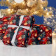 Papel De Presente Enfeites de Natal em Ouro Vermelho em Padrão Azul