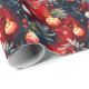 Um padrão festivo de Natal com enfeites vermelhos e dourados, frutos de inverno, ramos de pinheiro e flocos de neve delicados em um fundo azul escuro. Texturas ricas e pintadas e tons quentes de feriado criam um visual elegante e atemporal perfeito para embrulhar presentes sofisticados de Natal.
