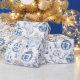 Papel De Presente Enfeites de natal Florais Chic Branco Azul
